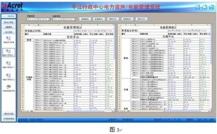 打印及導(dǎo)出,所有報(bào)表及界面均可打印,或以EXCEL、WORD格式導(dǎo)出;電能統(tǒng)計(jì)表格如圖3所示;