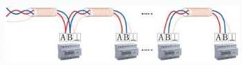 儀表之間采用屏蔽雙絞線進(jìn)行總線型連接,通過通訊擴(kuò)展卡進(jìn)入監(jiān)控主機(jī)。圖3所示為ADL儀表通訊電纜接線示意圖。通過對配電系統(tǒng)的二次設(shè)備進(jìn)行組網(wǎng),經(jīng)由通訊網(wǎng)絡(luò)到達(dá)監(jiān)控主機(jī),將分散的配電所的現(xiàn)場設(shè)備連接為一個整體。