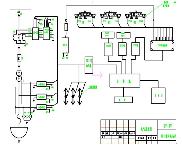 圖—2 所示,是成都高威公司研發(fā)成功的GV系統(tǒng)的硬件原理圖。系統(tǒng)采樣信號有:高壓電流互感器給出的電流信號,AC 0~5A模擬信號,經(jīng)過系統(tǒng)配置的隔離傳感器變換為DC0~5V信號,再經(jīng)A/D板進行轉換為數(shù)字信號給計算機計算;變壓器低壓側電極電壓信 號,AC0~500V,經(jīng)過系統(tǒng)配置的隔離傳感器變換為DC0~5V信號,再經(jīng)A/D板進行轉換為數(shù)字信號給計算機計算;電極夾持器位移信 號,DC0~5V,經(jīng)A/D板進行轉換為數(shù)字信號給計算機計算。