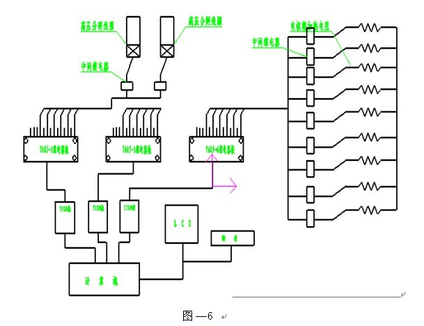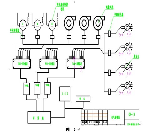 圖—5 為GV系統(tǒng)的液壓系統(tǒng)、電極風機、變壓器檔位控制硬件原理圖,圖—6 是電極糊加熱和高壓分合閘操作控制的硬件原理圖。由計算機直接控制7685繼電器板驅動,完成控制功能。操作者可以進行遠距離操作控制,便于密閉電石爐冶 煉過程的安全監(jiān)督。如果出現(xiàn)異常,能夠在第一時間控制相關操作,避免事故的發(fā)生。