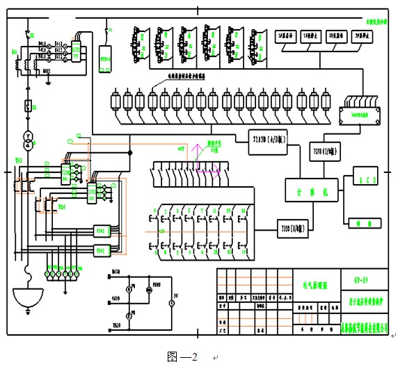 圖—2 所示,是成都高威公司研發(fā)成功的GV系統(tǒng)的硬件原理圖。系統(tǒng)采樣信號有:低壓電流互感器給出的電流信號,AC 0~5A模擬信號,經(jīng)過系統(tǒng)配置的隔離傳感器變換為DC0~5V信號,再經(jīng)A/D板進(jìn)行轉(zhuǎn)換為數(shù)字信號給計算機(jī)計算;變壓器低壓側(cè)電極電壓信 號,AC0~500V,經(jīng)過系統(tǒng)配置的隔離傳感器變換為DC0~5V信號,再經(jīng)A/D板進(jìn)行轉(zhuǎn)換為數(shù)字信號給計算機(jī)計算;電極懸掛鏈拉力傳感器給出電極狀 態(tài)拉力信號,DC0~5V,經(jīng)A/D板進(jìn)行轉(zhuǎn)換為數(shù)字信號給計算機(jī)計算。