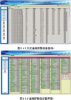 遙信和遙測報(bào)警功能,主要完成對低壓各出線回路的開關(guān)運(yùn)行狀態(tài)和負(fù)載進(jìn)線監(jiān)控,對開關(guān)變位和負(fù)載越限彈出報(bào)警界面指示具體的報(bào)警位置并聲音報(bào)警,提醒值班人員及時(shí)處理。遙測報(bào)警值設(shè)置界面可以看到每個(gè)監(jiān)控點(diǎn)的實(shí)時(shí)值和報(bào)警設(shè)置值,方便值班人員比對進(jìn)線設(shè)置,負(fù)載越限值在相應(yīng)權(quán)限下可自由設(shè)置。具備歷史查詢功能。見圖(3)至圖(5)。