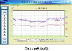 負(fù)荷趨勢曲線界面中可直觀的查看回路的負(fù)荷運(yùn)行情況。查看實(shí)時(shí)和歷史趨勢曲線,點(diǎn)擊畫面相應(yīng)按鈕或菜單項(xiàng)可以完成相應(yīng)功能的切換;幫助用戶進(jìn)線趨勢分析和故障追憶,具備曲線打印功能。為分析整個(gè)系統(tǒng)的運(yùn)行狀況提供了直觀而方便的軟件支持。見圖(8)。