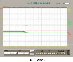 負荷趨勢曲線提供了某一段時間內(nèi)該回路的負荷趨勢,方便管理員掌握用電設(shè)備的運行狀況,對存在故障隱患的設(shè)備及時提出整改,對不合理用電單位提出科學合理的改進。如圖4所示: