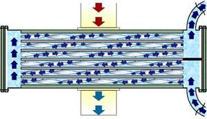 改造前:凝汽器銅管內(nèi)壁水的流動呈現(xiàn)層流狀態(tài)如下