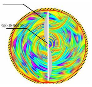 在換熱管內(nèi)裝置的轉(zhuǎn)動部分導(dǎo)流下,冷卻水呈螺旋線流動。連續(xù)自轉(zhuǎn)和不斷振擺,側(cè)刃對近管壁的邊界滯流層產(chǎn)生有效的擾動,變層流為廣泛紊流,從而使該裝置有一定的傳熱強化作用。經(jīng)部分電廠使用證明,該裝置節(jié)能增效的經(jīng)濟(jì)效益十分顯著。