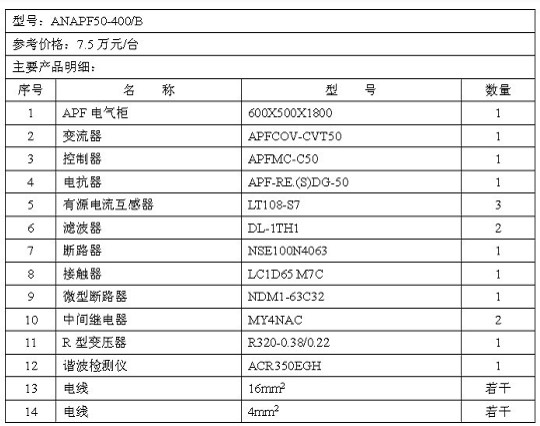 3.5 ANAPF有源電力濾波裝置價(jià)格及主要元件清單