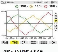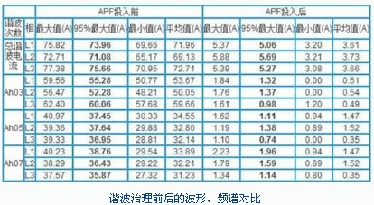 下面以配電室配電變壓器母線處ANAPF有源濾波器投入運行前、后配電系統(tǒng)電能質量測試情況的對比分析為例來具體描述。