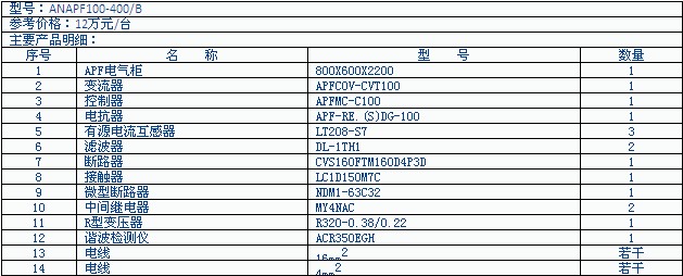 4.4 ANAPF有源濾波器報價及主要元件清單