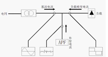 ANAPF系列有源電力濾波裝置,以并聯(lián)方式接入電網(wǎng),通過實時檢測負載的諧波和無功分量,采用PWM變流技術(shù),從變流器中產(chǎn)生一個和當前諧波分量和無功分量對應的反向分量并實時注入電力系統(tǒng),從而實現(xiàn)諧波治理和無功補償。