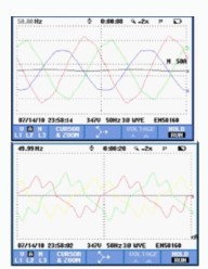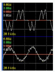 從附圖的對比中可以看出:同種負載條件下,投入使用ANAPF有源濾波器后,電能質(zhì)量改善的同時,又節(jié)省了電能;功率因數(shù)的大幅度提高,提升了變壓器、發(fā)電機的供電容量,從而解決了系統(tǒng)發(fā)電機帶全負荷運行時控制設(shè)備失調(diào)的問題。