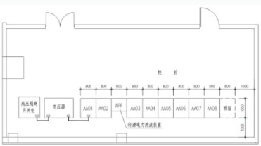 3)電氣設(shè)計人員在考慮系統(tǒng)接線及平面布置時應(yīng)注意將ANAPF的補償接入點盡量靠近補償對象,并處于采樣CT的上游,或在末端預(yù)留空間供設(shè)計安裝,CT采樣處下游不能包含容性負荷。平面布置示意如下圖: