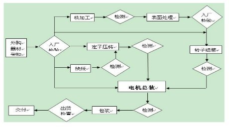 圖 1 稀土永磁無鐵芯電機生產(chǎn)流程圖