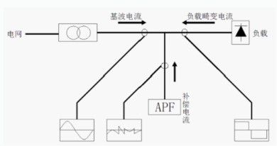ANAPF系列有源電力濾波裝置,以并聯(lián)的方式接入電網(wǎng),通過實(shí)時(shí)檢測(cè)負(fù)載的諧波和無(wú)功分量,采用PWM變流技術(shù),從變流器中產(chǎn)生一個(gè)和當(dāng)前諧波分量和無(wú)功分量對(duì)應(yīng)的反向分量并實(shí)時(shí)注入電力系統(tǒng),從而實(shí)現(xiàn)諧波治理和無(wú)功補(bǔ)償。(見圖1)