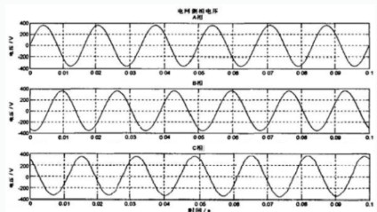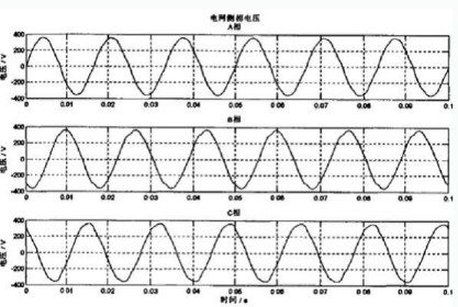 當(dāng)ANAPF未投入電網(wǎng)時(shí),電網(wǎng)側(cè)和負(fù)載側(cè)的電壓電流是完全相同的,所以下面僅列出了電網(wǎng)側(cè)的相電壓和相電流。