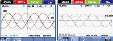 圖6:治理后電壓波形 圖7:治理后電流波形