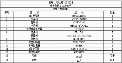 4.3 ANAPF有源濾波器報(bào)價(jià)及主要元件清單