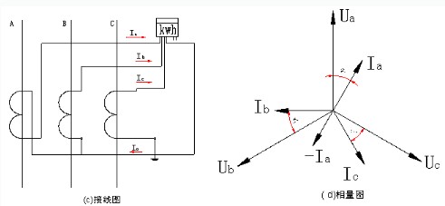 正確接線時的有功功率為:P=Pa+ Pb+ Pc =UaIa.cosφa+ Ub.Ib.cosφb+Uc.Ic.cosφc;三相電路平衡時,Ua=Ub=Uc=U,Ia=Ib=Ic=I,即,P=3UIcosφ