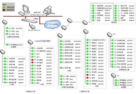 圖4為ZigBee無線網(wǎng)絡配電管理系統(tǒng)的通信框圖,它詳細的列出了82塊表計的型號及監(jiān)測的回路,其中主要監(jiān)測的對象有各個開關柜、控制柜進出回路的用電情況,生產(chǎn)工藝中的各個工藝流程的用電情況,各條生產(chǎn)線用電情況,辦公室的用電情況及各個空調(diào)回路的用電情況等等。通過這些統(tǒng)計分析,讓管理人員充分了解整個工廠的用能情況,通過統(tǒng)計分析找出不合理用能因數(shù),提出合理整改意見和措施。