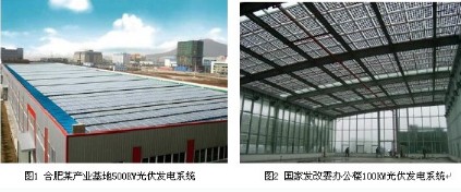 ?。?)另外一種是建筑與光伏器件相結合(如圖2),是將光伏器件與建筑材料集成化,用光伏器件直接代替建筑材料,即光伏建筑一體化(BIPV),如將太陽光伏電池制作成光伏玻璃幕墻、太陽能電池瓦等,這樣不僅可開發(fā)和應用新能源,還可與裝飾美化合為一體,達到節(jié)能環(huán)保效果,是今后的發(fā)展光伏建筑一體化的趨勢。
