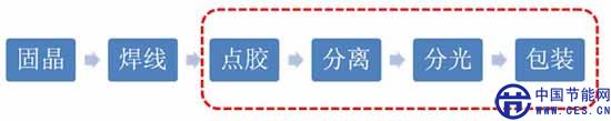 OB封裝在生產(chǎn)流程上和傳統(tǒng)SMD生產(chǎn)流程基本相同,在固晶,焊線流程上和SMD封裝效率基本相當(dāng),但是在點(diǎn)膠,分離,分光,包裝上,COB封裝的效率, 要比SMD類(lèi)產(chǎn)品高出很多,傳統(tǒng)SMD封裝人工和制造費(fèi)用大概占物料成本的15%,COB封裝人工和制造費(fèi)用大概占物料成本的10%,采用COB封裝,人 工和制造費(fèi)用可節(jié)省5%。