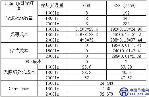 從以上可以看出使用COB比使用傳統(tǒng)SMD光源成本可降低19%到32%不等,由此可大幅度降低LED成品的成本,將有利于LED照明盡快普及。