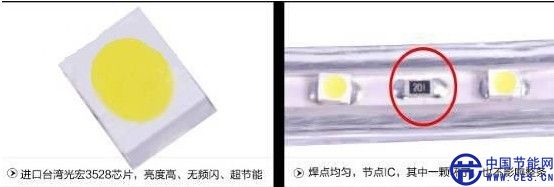 目前常用的LED燈帶種類, 是3528和5050燈帶(3528指的是LED光源尺寸,長(zhǎng)32mm寬28毫米,5050指的是LED光源長(zhǎng)寬都是50毫米),二者區(qū)別一方面是尺寸不同,另一方面是5050燈珠里面有3顆LED芯片,而3528里只有1顆LED芯片,因此相同燈珠數(shù)下, 5050 LED燈帶亮度是3528 LED燈帶的3倍,功率也是其3倍,價(jià)格也要比其貴一些。