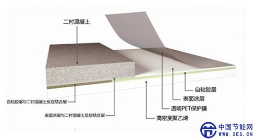 作為防水層主體的高密度聚乙烯與我們稱為“白色污染”的塑料袋屬于同一類材料,在地下可百年不腐,其具有高強(qiáng)度、高延伸率、高撕裂性能,同時甲烷氣體及水蒸氣透過率也低于同類產(chǎn)品;高分子自粘膠類似于家用粘接掛鉤上的不干膠,能夠提供很好的粘接性能,可承受結(jié)構(gòu)產(chǎn)生的裂紋影響,且自身耐水性能極佳;耐候?qū)邮且环N特殊的涂料,既可使卷材在施工時可適當(dāng)外露,同時提供不粘的表面供工人行走進(jìn)行后續(xù)施工;PET隔離膜如同不干膠隔離紙一般,在施工前揭去,可保護(hù)產(chǎn)品整體在運輸、貯存的過程中免受外力影響和破壞。