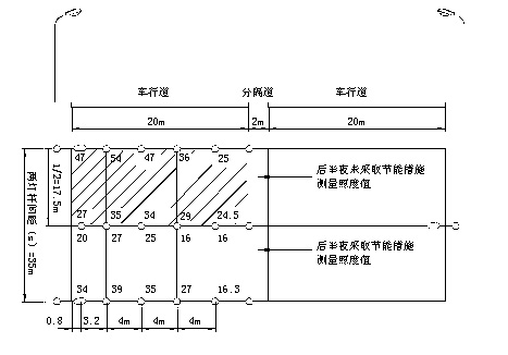 例:鄭開大道,道路寬42m,10車道,12m高路燈,35m間距交錯布置,后半夜電壓從采用節(jié)能前240V變至采用節(jié)能后196V。