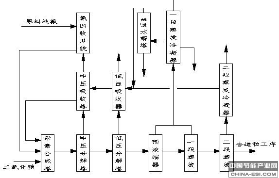 水溶液全循環(huán)節(jié)能尿素生產(chǎn)工藝流程圖