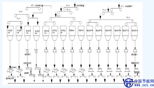 圖一、礦焦配料系統(tǒng)結(jié)構(gòu)原理圖