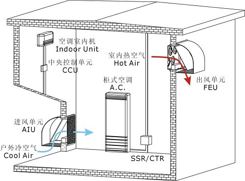 A、當(dāng)機(jī)房?jī)?nèi)部溫度上升到需要散熱溫度(或指定溫度)時(shí),自動(dòng)打開(kāi)百頁(yè)窗,利用直流風(fēng)機(jī)引入室外空氣,并排出室內(nèi)的熱空氣而形成空氣對(duì)流,達(dá)到降低室內(nèi)溫度的目的。為了保證進(jìn)風(fēng)潔凈,在進(jìn)/排風(fēng)道加裝專(zhuān)業(yè)的空氣過(guò)濾網(wǎng)。