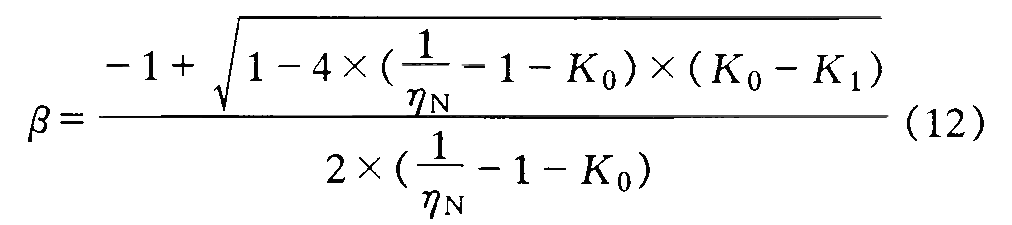 例如:一臺Y160L一415kW電機,ηN=88.5%,K0=3.8%,K1=25% (K0可以通過查詢國家標準得到,K1由實際測量得到)。將以上參數(shù)代入式(12),得β=20.8%。