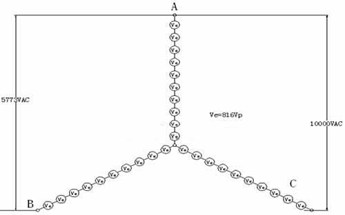 單元串聯(lián)多電平變頻器采用若干個獨立的低壓功率單元串聯(lián)的方式來實現(xiàn)高壓輸出其原理如圖3.3所示