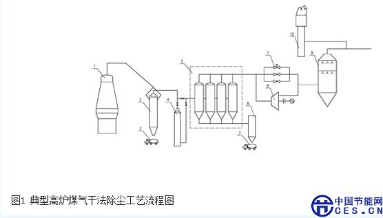 圖1 典型高爐煤氣干法除塵工藝流程圖