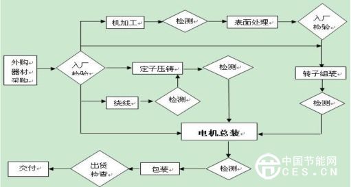 圖1 稀土永磁無鐵芯電機生產(chǎn)流程圖