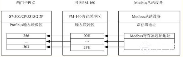 圖15 PLC通過(guò)PM-160讀寫(xiě)Modbus從站設(shè)備數(shù)據(jù)地址對(duì)應(yīng)關(guān)系