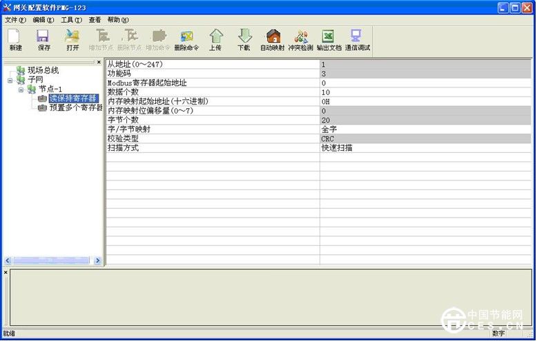 其中,圖9中的“節(jié)點(diǎn)-1”表示連接的從站設(shè)備地址為1,配置了“讀保持寄存器”和“預(yù)置多個(gè)寄存器”兩條命令,表示網(wǎng)關(guān)讀取了從站對(duì)應(yīng)地址的數(shù)據(jù),并且能夠輸出數(shù)據(jù)到Modbus從站設(shè)備,命令配置方法如下: