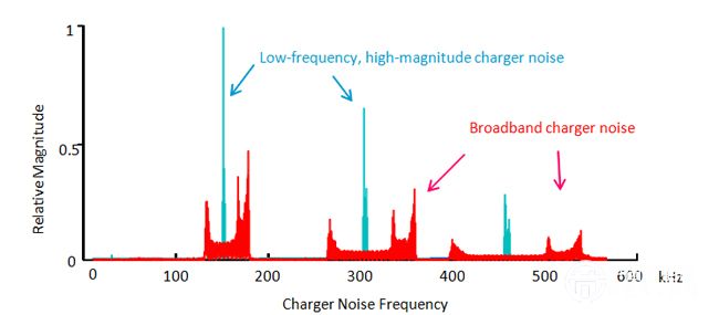圖2:窄帶和寬帶充電器干擾圖