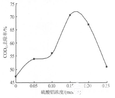 圖 2 Al2(SO4)3濃度對CODCr去除率的影響