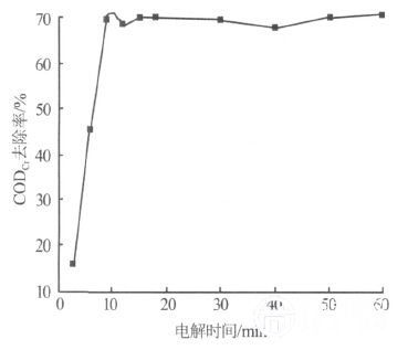 2.2.5 電解時(shí)間對CODCr去除率的影響
