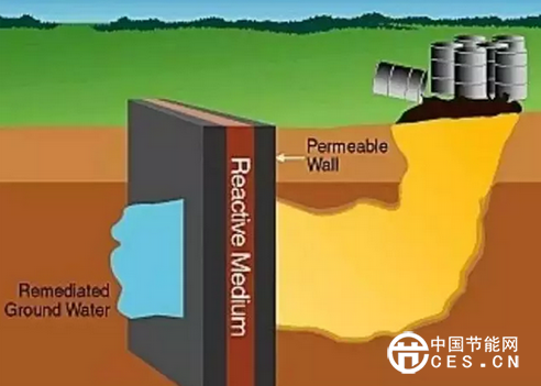 技術(shù)原理:是指在污染源的下游開(kāi)挖溝槽,安置連續(xù)或非連續(xù)的滲透性反應(yīng)墻,在其中充填反應(yīng)介質(zhì),與流經(jīng)的地下水發(fā)生物理、化學(xué)和生物化學(xué)反應(yīng),使地下水中的污染物得以阻截、固定或降解。