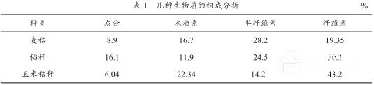 生物質(zhì)的組成主要由3種聚合體(纖維素、半纖維素和木質(zhì)素)以及少量的灰分和提取物組成,各成分含量見表1。