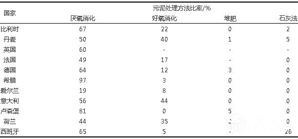表1 歐盟各國采用的污泥處理方法