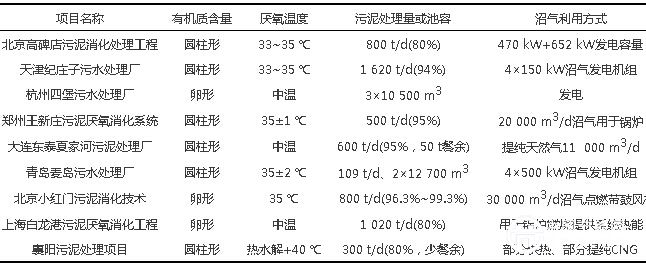 表2 國內(nèi)部分典型污泥厭氧消化項目