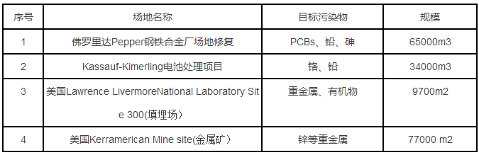 污染土壤阻隔填埋技術(shù)早在20世紀(jì)80年代初期就已經(jīng)開始應(yīng)用,該技術(shù)在國外已經(jīng)應(yīng)用30多年,已成功用于近千個工程,技術(shù)已經(jīng)相對比較成熟,國外部分案例信息表如下。