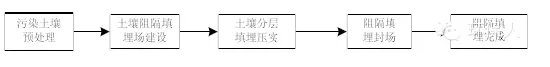 對于高風(fēng)險污染土壤可以聯(lián)合固化/穩(wěn)定化技術(shù)使用后,對污染土壤進(jìn)行填埋;對于低風(fēng)險污染土壤可直接填埋在阻隔防滲的填埋場內(nèi)或原位阻隔覆蓋。該技術(shù)一方面可以隔絕土壤中污染物向周邊環(huán)境遷移,另一方面可使其污染物在阻隔區(qū)域內(nèi)自然降解。