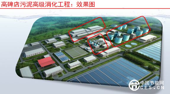 這是高碑店的效果圖,右上方是8個厭氧消化罐。左下角是四條熱水解生產(chǎn)線,上面是污泥脫水機。相信很快你們就可以看到我們高碑店項目,實際的實景項目。