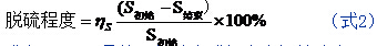 式中,S初始是處理前鐵水或鋼水中初始硫含量,S結束是處理后鐵水或鋼水中最終硫含量。