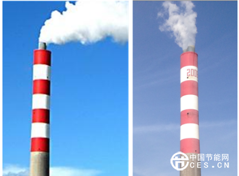 圖 5國電北侖電廠#7機組WESP投運前、后煙囪排放對比圖